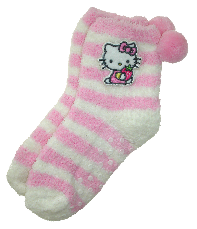 As meias para criança Stripes Hello Kitty, de tamanho único, são perfeitas para manter os pés quentinhos com muito estilo. Em tons de rosa e branco, apresentam riscas suaves e a imagem da icónica Hello Kitty, adicionando um toque divertido e encantador ao visual dos mais pequenos. O acabamento com pompons na parte superior dá ainda mais graça a esta peça.