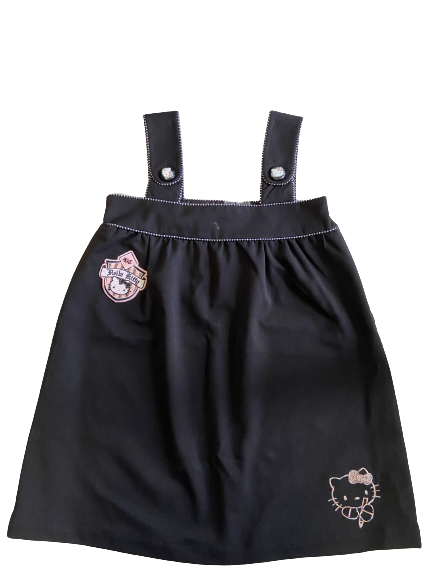 O vestido Hello Kitty, indicado para 10 anos, é uma peça prática e cheia de charme, perfeita para um visual descontraído e divertido. De cor preta, apresenta alças ajustáveis com botões e pormenores estampados e cosidos da icónica Hello Kitty, acrescentando um toque delicado e original ao conjunto.