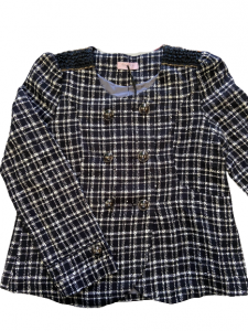 O casaco B&W Hello Kitty, disponível nos tamanhos L e M, é uma peça elegante e sofisticada, ideal para quem aprecia um estilo clássico com um toque moderno. Com um padrão em preto e branco, o casaco apresenta um corte cintado que valoriza a silhueta, complementado por um fecho frontal de botões duplos que reforça a sua inspiração tradicional.