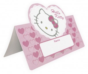 Alegre, amigável e muito brincalhona, a Hello Kitty adora fazer novos amigos, andar sempre na moda e fazer bolachas! A boneca foi desenhada com o objetivo de cada criança sentir a partilha de sentimentos e emoções daí ser uma "gata sem boca". As festas de aniversário são muito importantes para as crianças se sentirem especiais no seu dia de anos e por isso a Hello Kitty quer participar da festa com as decorações mas giras! A Kitty tem muito amor para dar, abraçada a um grande coração cor de rosa muito fofinho. Os marcadores de mesa da Hello Kitty são super giros! Escreve o nome dos teus convidados e distribui os lugares pela mesa para que ninguém fique de fora!- Contém 12 marcadores de mesa