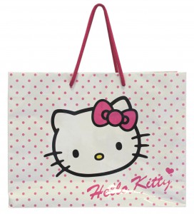 Saco de Embrulho Face Hello Kitty, 34 x 26 cm, Tamanho S, Papel com Brilho - Branco
