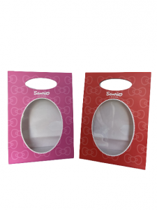 Torne cada presente ainda mais especial com este encantador saco para prendas Hello Kitty. Disponível em rosa ou vermelho, este saco elegante apresenta um design sofisticado com um recorte oval transparente que permite vislumbrar o conteúdo no interior.