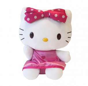 O peluche Ribbon Hello Kitty é um adorável e elegante peluche de 82 cm, confeccionado em poliéster macio e confortável. Com um vestido rosa delicado e um laço de bolinhas charmoso, ele celebra o estilo clássico e encantador da Hello Kitty.