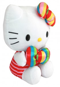 O peluche Rainbow Hello Kitty é uma adorável e vibrante adição à coleção de qualquer fã. Com 46 cm de altura e confeccionado em poliéster macio, este peluche combina um design clássico da Hello Kitty com cores alegres e um laço arco-íris encantador.