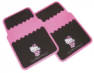 Proteja o interior do seu automóvel com charme e estilo, utilizando este adorável conjunto de dois tapetes da Hello Kitty. Com um elegante design em preto com detalhes rosa vibrantes, estes tapetes não só mantêm o carro limpo e organizado, como também adicionam um toque único e feminino, perfeito para fãs desta famosa personagem.