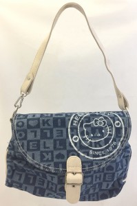 Bolsa de Mão Denim Canvas Hello Kitty, Denim - Azul e Branco