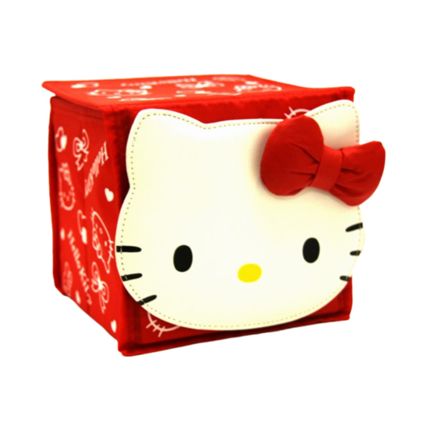 O vibrante tom vermelho, decorado com padrões gráficos que evocam a personalidade divertida da Hello Kitty, faz desta caixa não apenas um item de armazenamento, mas também uma peça de decoração que pode animar qualquer espaço.