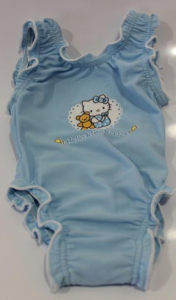 O fato de banho para bebé Hello Kitty, indicado para 6 meses, é perfeito para os primeiros mergulhos e dias de brincadeira ao sol. De cor azul suave, apresenta um adorável estampado da Hello Kitty com um ursinho, conferindo um toque de ternura e alegria ao visual dos mais pequenos.