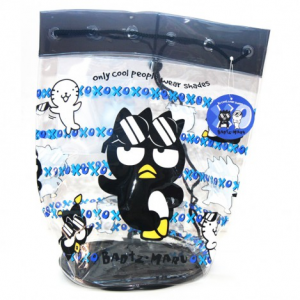 O saco de praia Badtz-Maru XO Hello Kitty é a escolha perfeita para quem procura um acessório irreverente e funcional para os dias de sol. Com um design transparente e detalhes em preto, o saco é ilustrado com a figura ousada de Badtz-Maru, rodeado de elementos gráficos azuis e brancos que transmitem uma estética moderna e divertida.